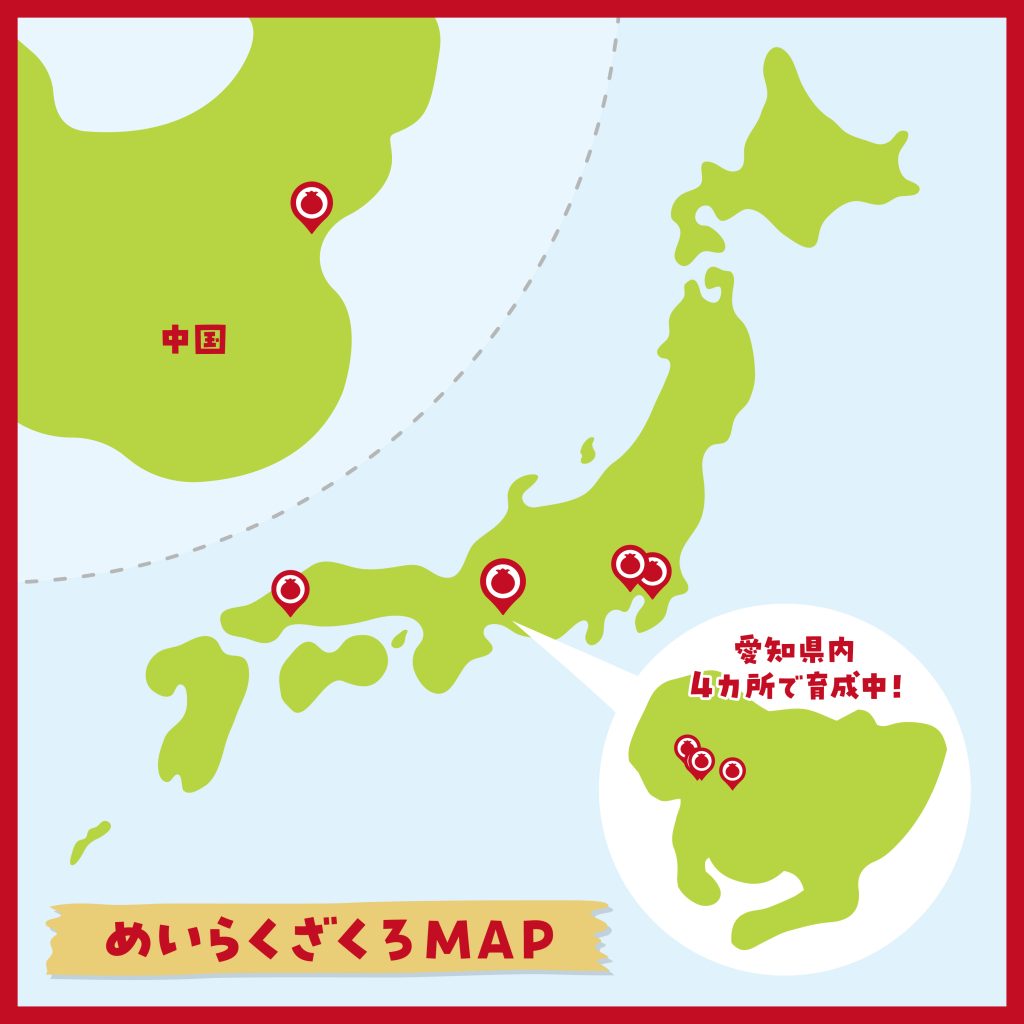 毎月各地のざくろを紹介する際、どの場所で育てているのか分かりやすくお伝えしたく、ざくろMAPを作成してみました。今月は愛知県内4カ所のうちの1カ所、めいらく本社での様子をお伝えしました(‘◇’)ゞ今後も各地の紹介をお楽しみに!