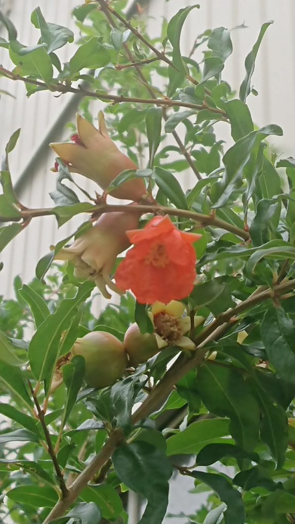 季節は冬に向かっていますが、ザクロたちは花を咲かせたり、実が大きくなることから、まだ暑いのかな・・と観察していて季節感のズレを感じます。これから葉は落ちていくかと思いますが、色んな変化を追っていきます。