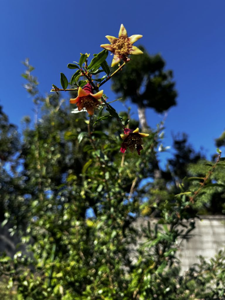 こちらのカルフォルニアザクロに初めての花が咲きました。