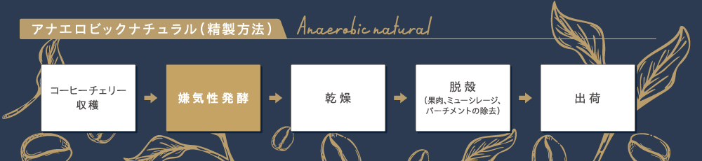 アナエロビックナチュラル精製方法によりロブスタ種でありながらワインのような風味を持つファインロブスタ豆とエチオピアモカ(イルガチェフェ)をブレンドした華やか香りが特長です。