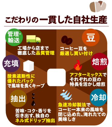 コーヒー豆の買い付けから品種・産地・使用量・焙煎度合・抽出等に拘り、コーヒー本来の風味を最大限に引き出しました。
